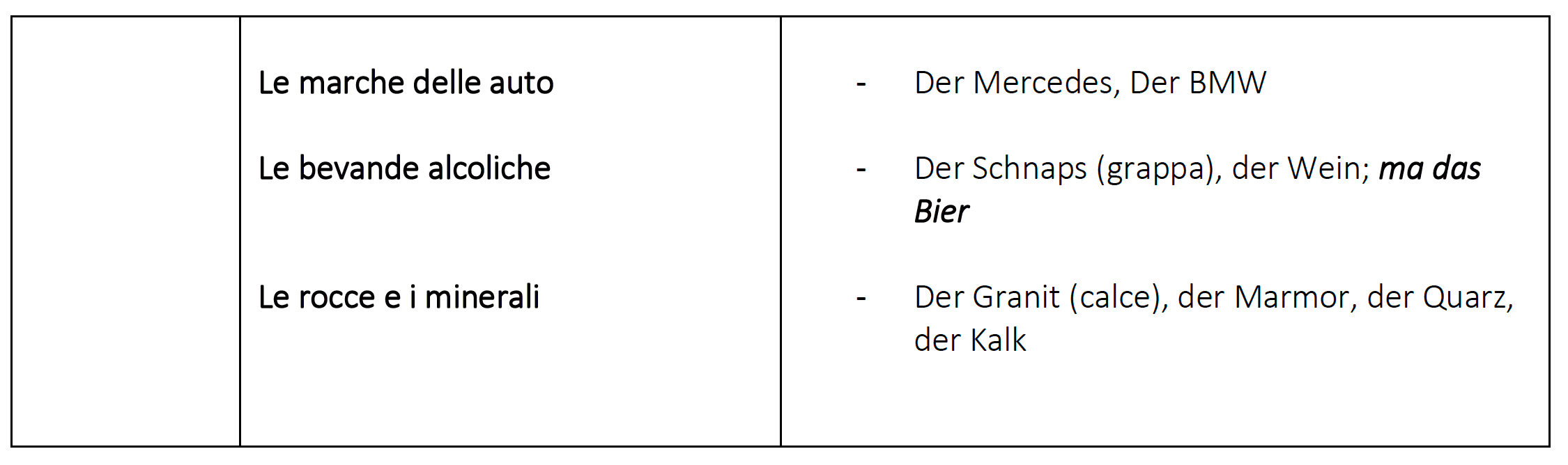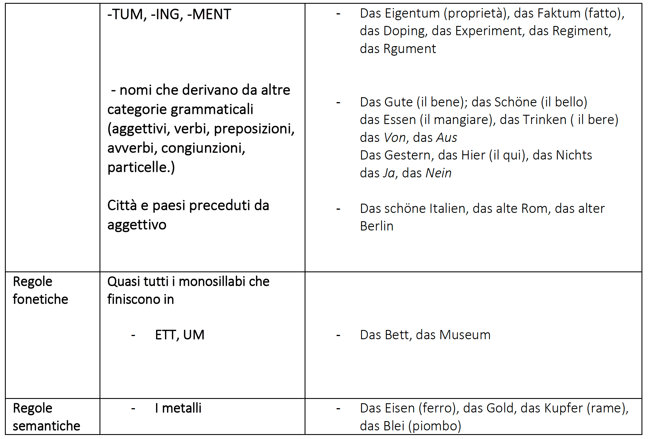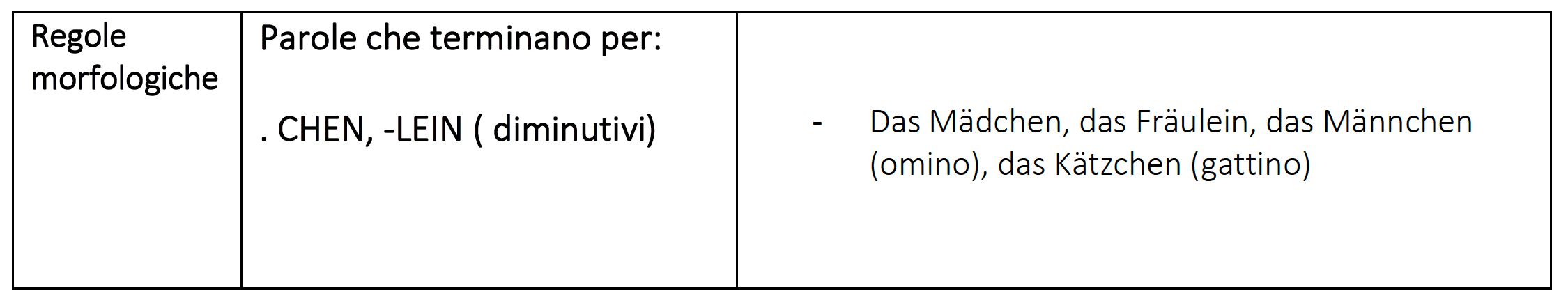 Come vedi non c’è corrispondenza tra italiano e tedesco. I tedeschi riescono però a risalire, nella maggior parte dei casi al genere dei nomi, perché seguono delle regole morfologiche ( di struttura della parola), fonetiche ( di suono della parola) e semantiche ( di significato). Anche i tedeschi apprendono queste regole per evitare di commettere errori e inoltre imparano che ogni parola nuova deve essere imparata con il suo articolo.