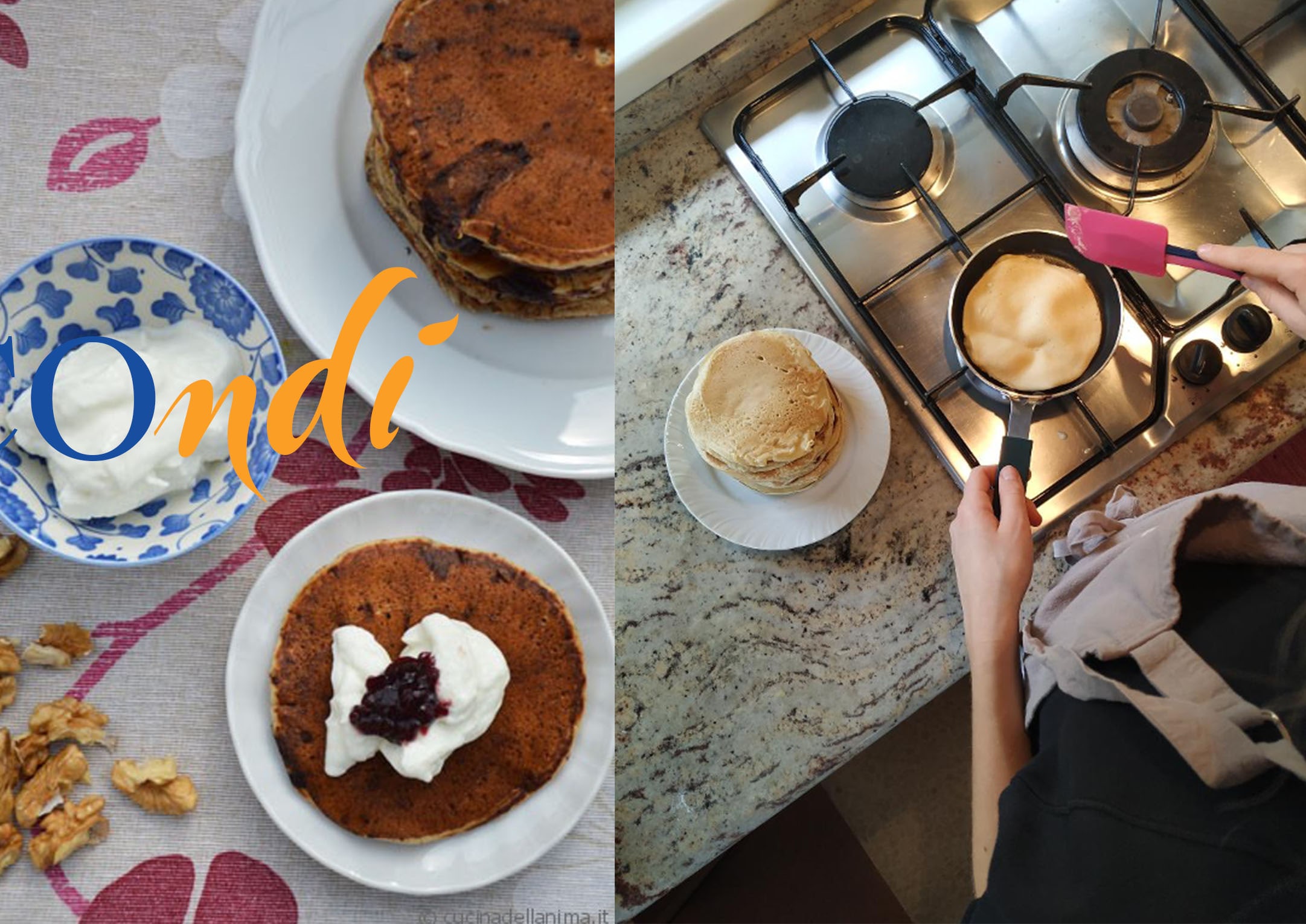 Nota per i genitori: vale sempre la regola dell’attenzione verso i singoli ingredienti. La base dei pancake è una farina semintegrale tipo 2 macinata a pietra (la potete trovare in questo periodo nei mulini locali organizzati per la consegna a domicilio) diluita nel latte di soia, il cioccolato è un fondente al 75%, lo zucchero è integrale di canna.