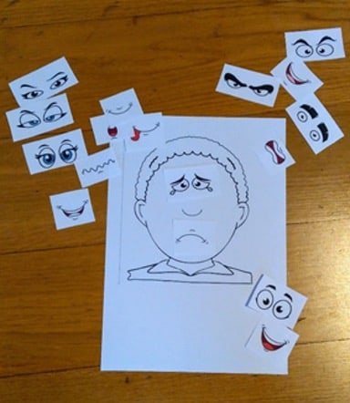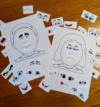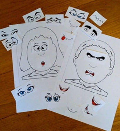 - Stampare e ritagliare i due volti e le espressioni in allegato