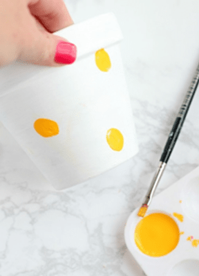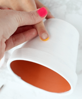 Inizia a dipingere il vaso di terracotta con la vernice bianca. Lascia asciugare e colora passando una seconda mano;