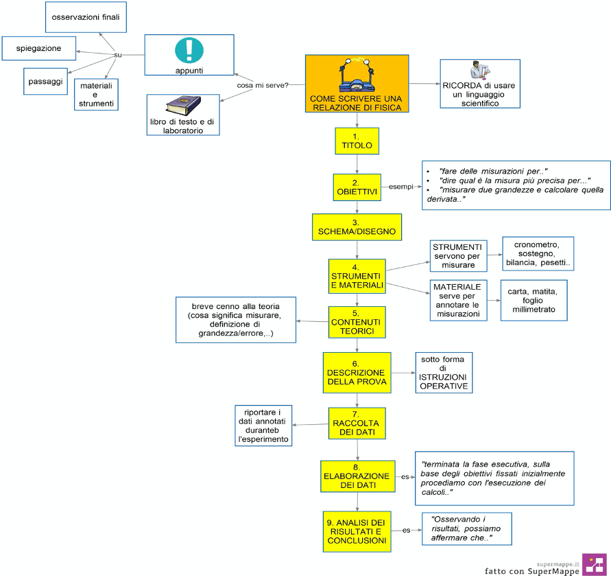 Negli scorsi giorni vi avevamo suggerito una mappa utile per scrivere la relazione di laboratorio di chimica. Questa settimana invece volevamo proporvi una scaletta, elaborata assieme ad uno studente del liceo scientifico, per scrivere la relazione di fisica.