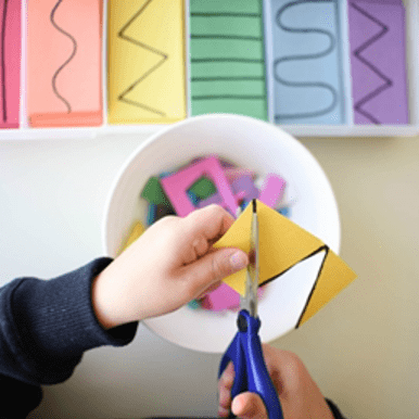 - Un ottimo esercizio per sviluppare l’uso della manualità, il coordinamento e utile per allenare i prerequisiti per la scuola primaria è quello di far ritagliare seguendo le linee (Il taglio sviluppa il coordinamento bilaterale, il coordinamento occhio-mano e le capacità motorie. Il coordinamento bilaterale utilizza entrambe le parti del corpo, entrambe le mani lavorano su compiti diversi. Le abilità apprese nel taglio preparano il bambino alle abilità di scrittura e alla manipolazione)