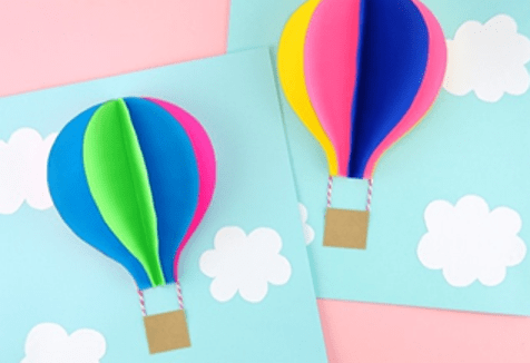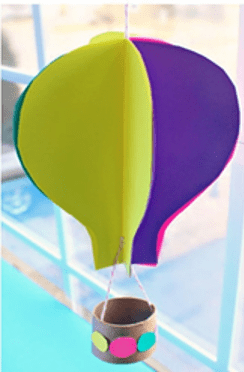 - In alternativa potete incollare la mongolfiera in un foglio azzurro che ricrea il cielo e abbellire a piacere.