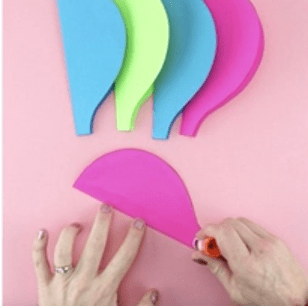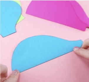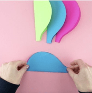 - Utilizzando i cartoncini dei colori che più vi piacciono ricalcate lo stampo e ritagliate da 4 a 7 sagome, più ce ne saranno più sarà ricca la vostra mongolfiera;