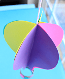 - Prima di incollare tra loro le sagome inserite un pezzetto di filo che vi servirà poi per appenderla, oppure potete praticare un foro in alto e utilizzare il filo da pesca trasparente;