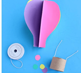 - Tagliate due pezzetti di filo, incollateli nel cestino e fermateli alla base della mongolfiera aiutandovi con la colla o con del nastro adesivo;